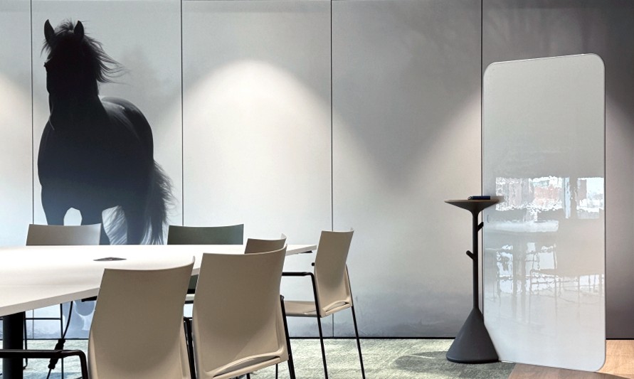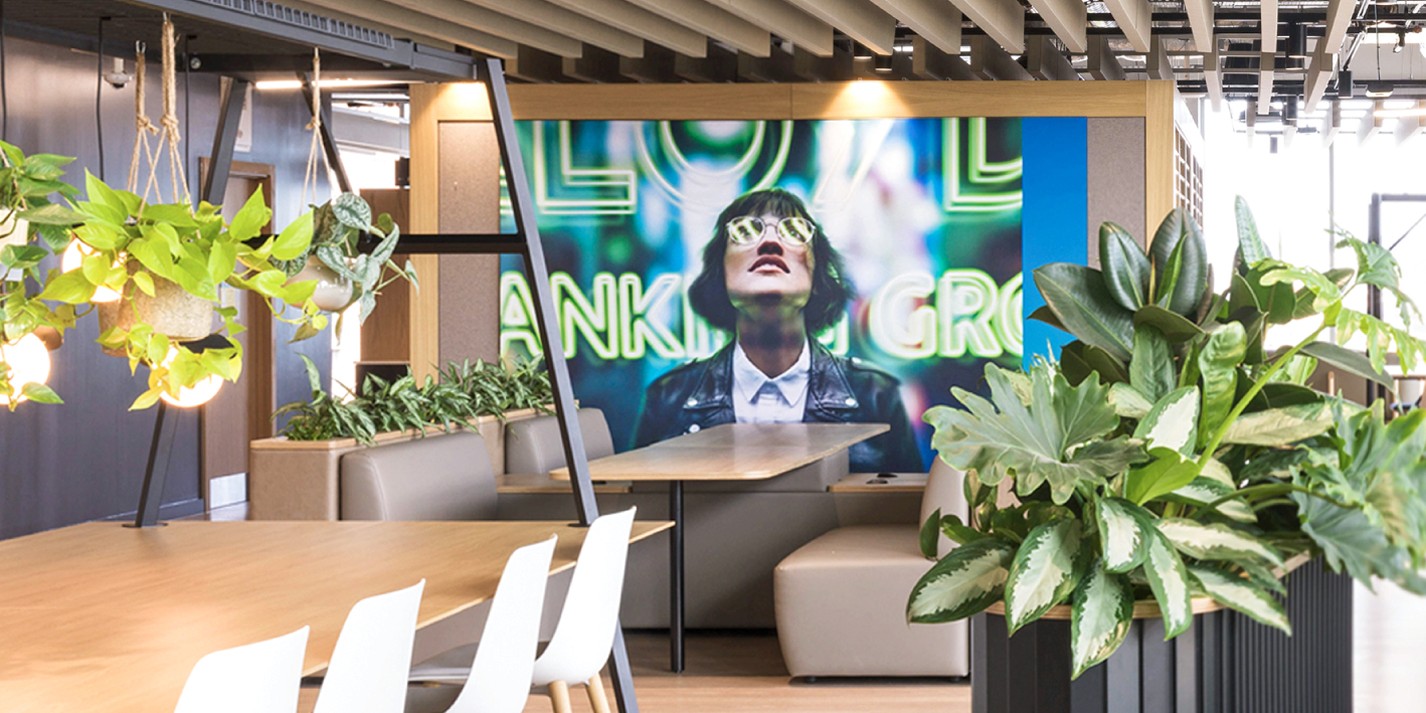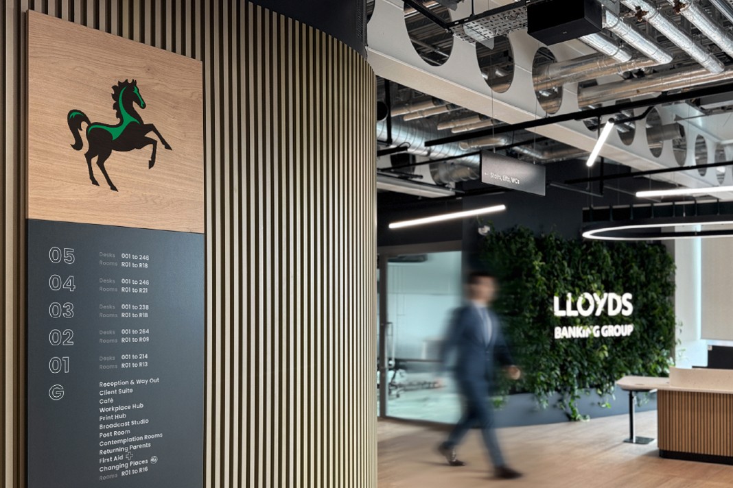 That brand with the black horse wanted to give their staff an experience, not just navigation to their desks. They needed an environmental branding package they could role out across their 92 offices.